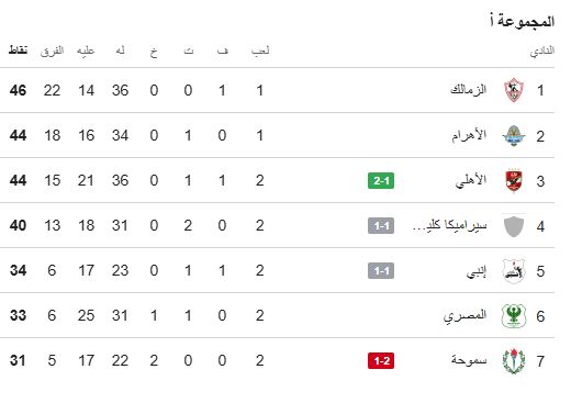 جدول ترتيب الدورى