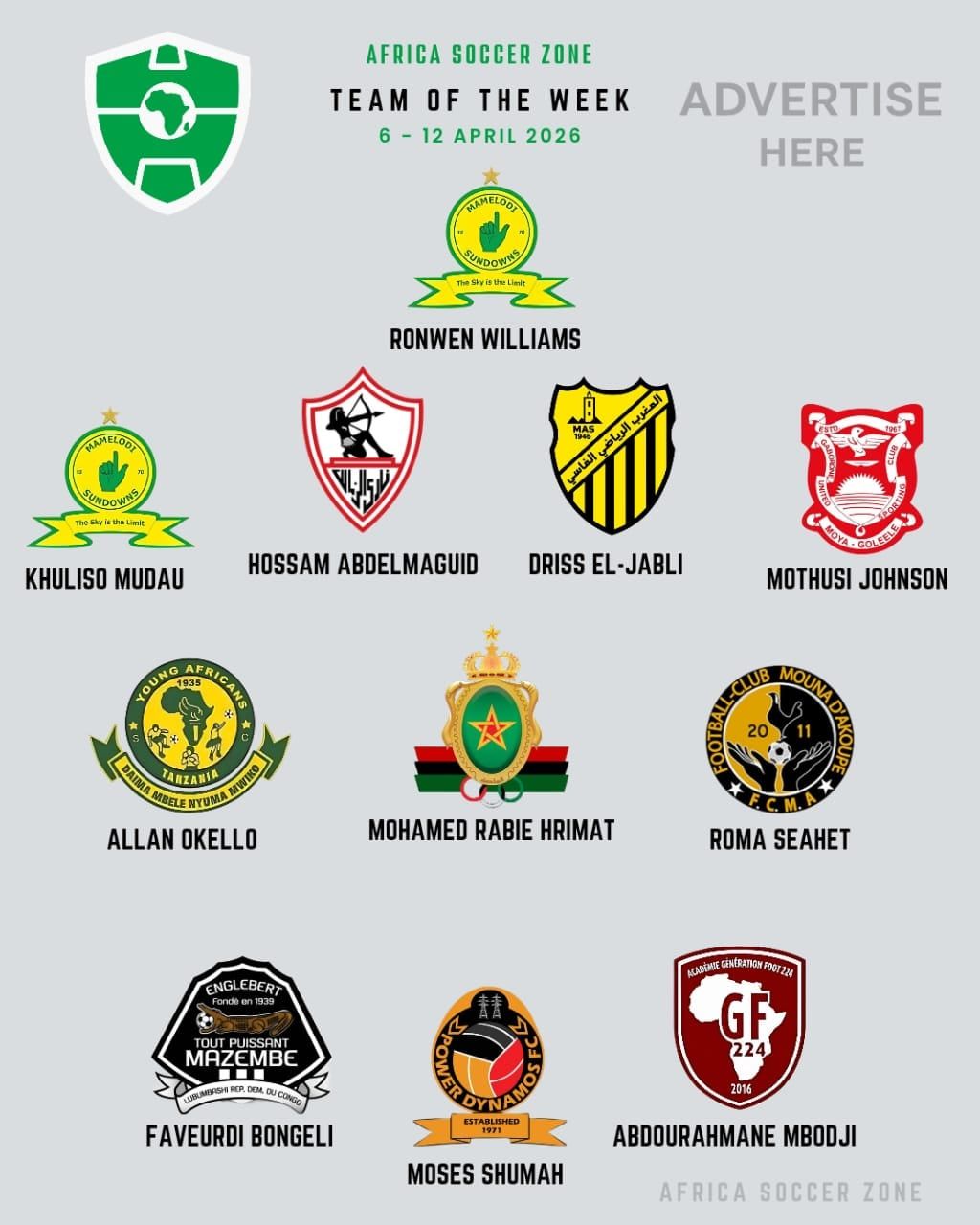 كما شهدت التشكيلة تواجد روبن ويليامز، حارس ماميلودي صن داونز، بعدما قدم مباراة مميزة أمام الترجي التونسي في ذهاب نصف نهائي دوري أبطال أفريقيا، حيث نجح في الحفاظ على نظافة شباكه خلال اللقاء الذي أُقيم على ملعب «رادس»، وانتهى بفوز صن داونز بهدف دون مقابل.