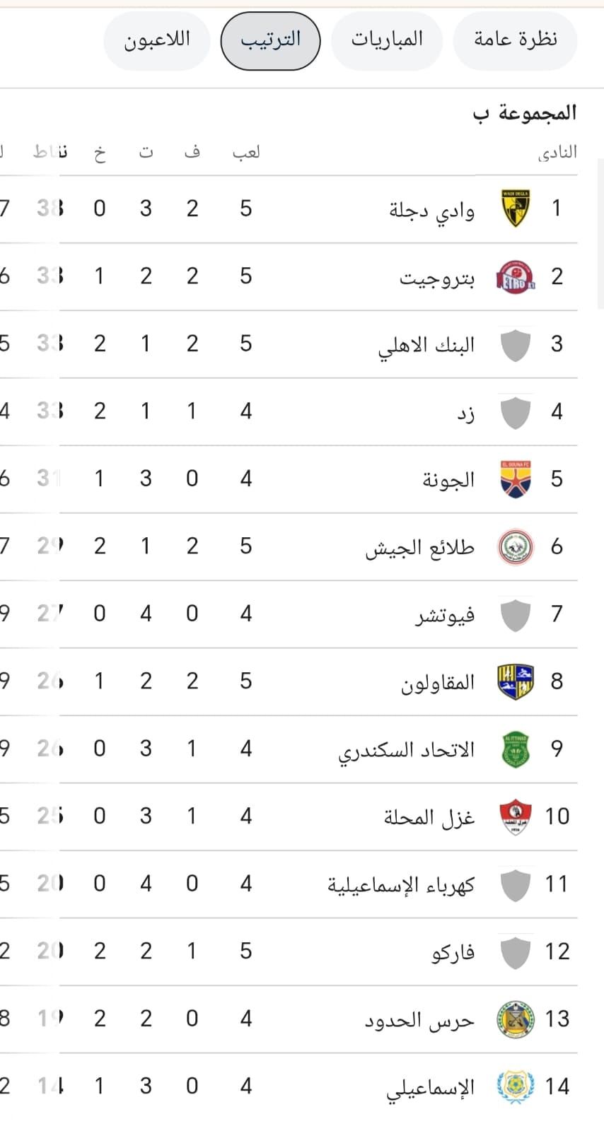 وتغلب فريق وادى دجلة في الجولة الخامسة من الدوري على البنك الأهلي بثنائية نظيفة ليرفع الغزلان رصيدهم إلى النقطة 38 في صدارة المجموعة بلا هزيمة حيث خاض دجلة في الدور الثاني 5 مباريات فاز خلالهم في مباراتين وتعادل في ثلاثة، فيما توقف رصيد البنك الاهلى عند النقطة 33 في المركز الثالث.