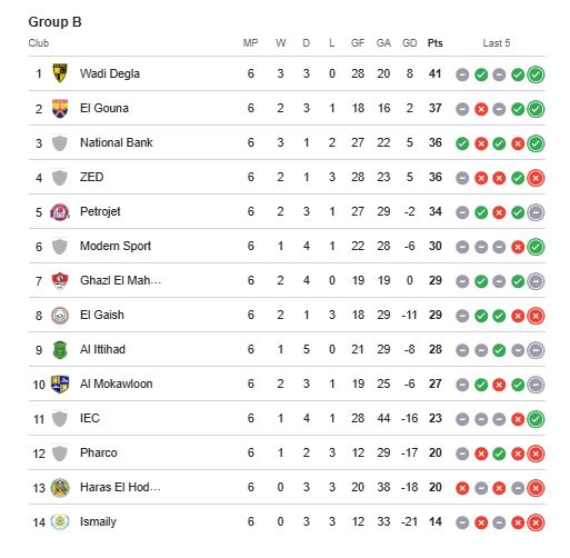 جدول ترتيب مجموعة الهبوط في الدوري المصري بعد مباراة حرس الحدود ووادى دجلة