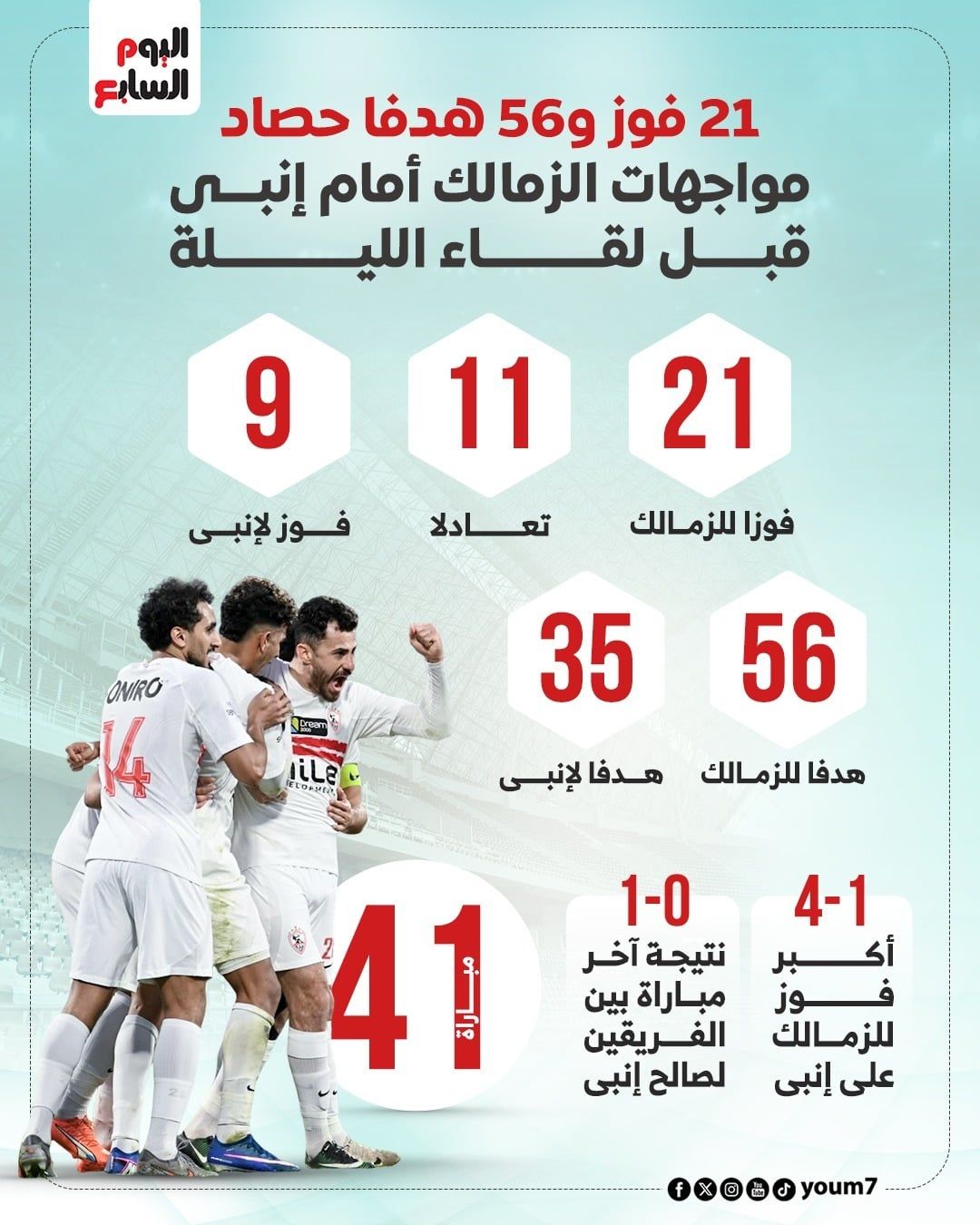 التقى الزمالك مع إنبى فى 41 مباراة قبل لقاء اليوم حقق الفارس الابيض 21 إنتصار وتعادل فى 11 مواجهة فيما خسر 9 لقاءات ، وسجل الفارس الابيض 56 هدف فى الشباك البترولية وتلقت شباكه 35 هدف ، وإنتهت أخر مواجهة جمعت الفريقين بفوز إنبى بهدف دون رد.