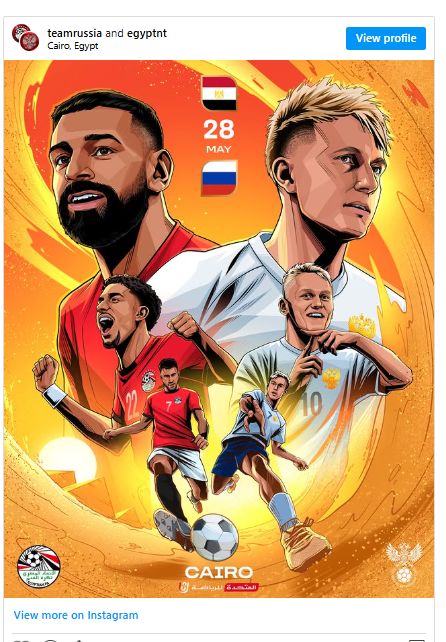 أعلن الاتحاد الروسى لكرة القدم، عن إقامة مباراة ودية بين المنتخب الروسي مع المنتخب الوطني المصرى الأول بقيادة حسام حسن يوم 28 مايو المقبل باستاد مصر بالعاصمة الجديدة ، ضمن برنامج الإعداد للمشاركة في كأس العالم 2026.