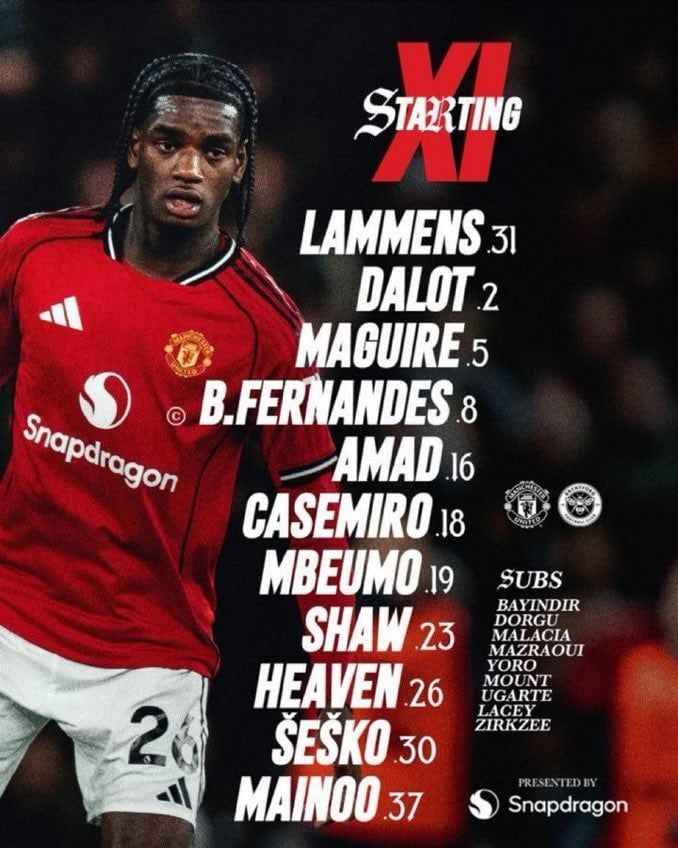تشكيل مانشستر يونايتد ضد برينتفورد