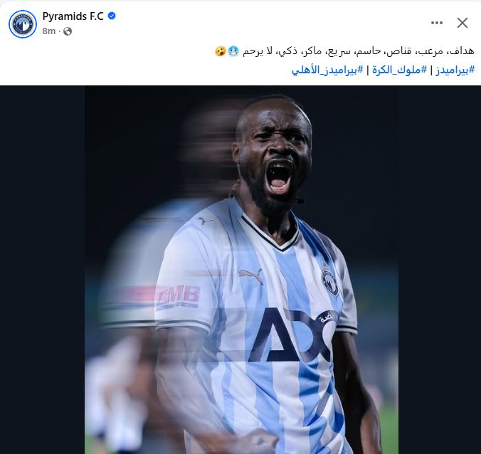 تغنت الصفحة الرسمية لنادى بيراميدز بالمهاجم الكونغولي فيستون ماييلى، بعد تسجيل ثنائية فى شباك الأهلى، بالمباراة التى جمعتهما مساء اليوم، فى بطولة الدورى المصرى الممتاز "دورى نايل".