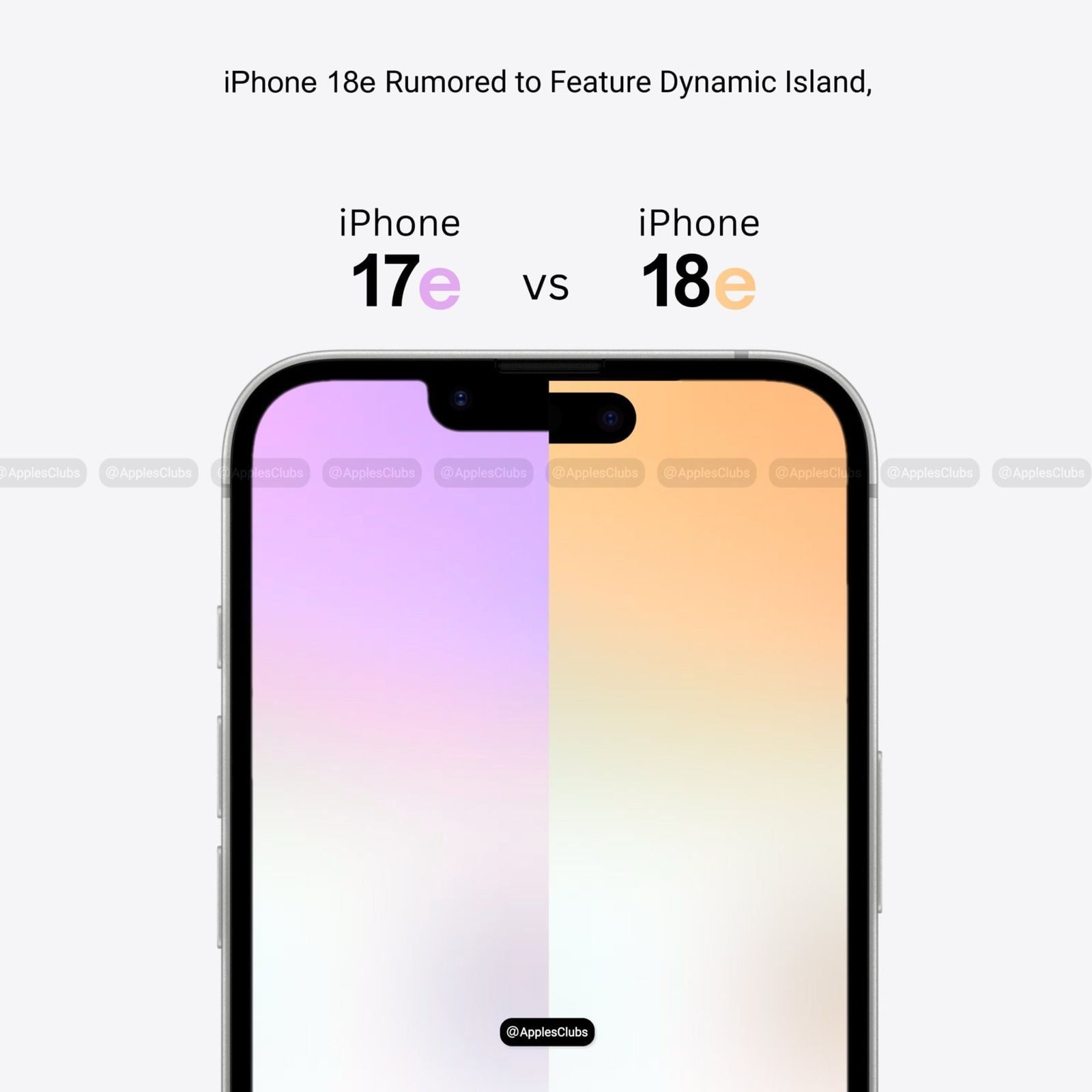 تُظهر الصورة المرفقة مقارنة مباشرة بين iPhone 17e وiPhone 18e، حيث يبدو أن الإصدار الجديد سيستبدل النوتش التقليدي بتصميم Dynamic Island.