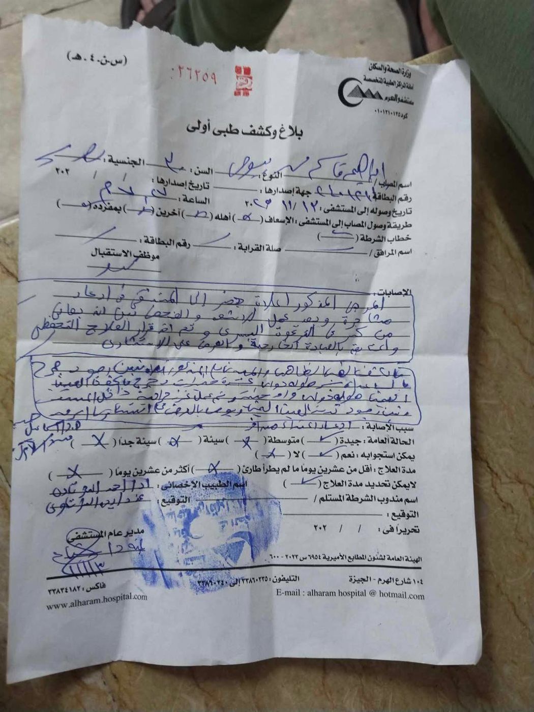 تناشد أسرة المواطن إبراهيم قاسم بيومي، 30 سنة، في منطقة فيصل بمحافظة الجيزة وزارة الداخلية سرعة التدخل لحمايتهم، بعد تعرضه لاعتداء عنيف على يد عدد من الأشخاص، أسفر عن إصابته بخلع في الكتف وكدمات ونزيف حاد، فضلًا عن سرقة المبلغ المالي الذي كان بحوزته وفقًا لما ورد في محضر رسمي يحمل رقم 50631.