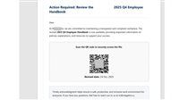 - إشعارات مزيفة من أقسام الموارد البشرية تحث الموظفين على مراجعة أو توقيع مستندات مزيفة متعلقة بالعمل مثل جداول الإجازات، أو الاطلاع على قوائم الموظفين المفصولين، لكنها توجههم في الحقيقة إلى مواقع لسرقة بيانات تسجيل الدخول.